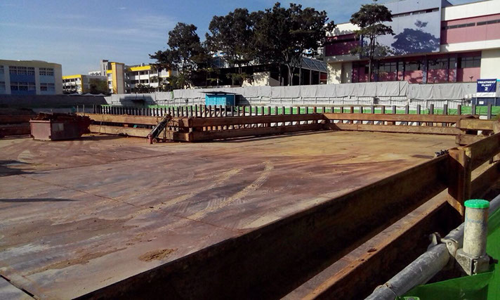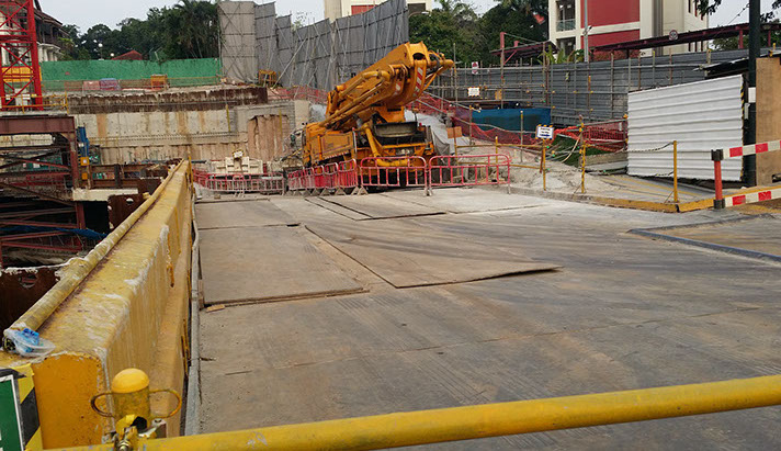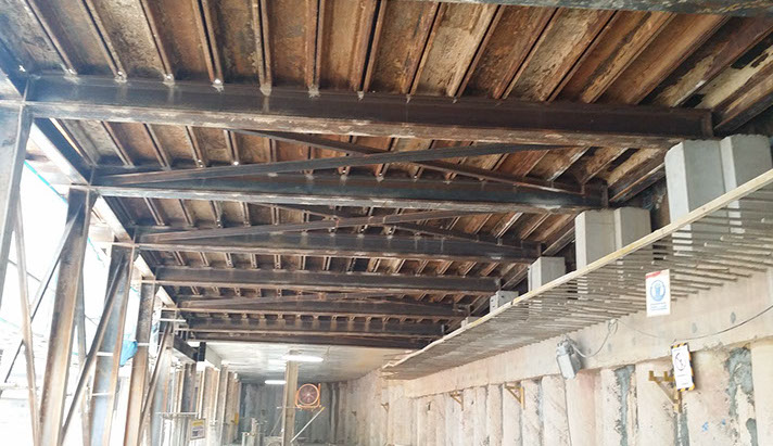 A comprehensive temporary steel decking constructed for materials storage, vehicle access & egress and working platform to expedite deeper excavation during construction work