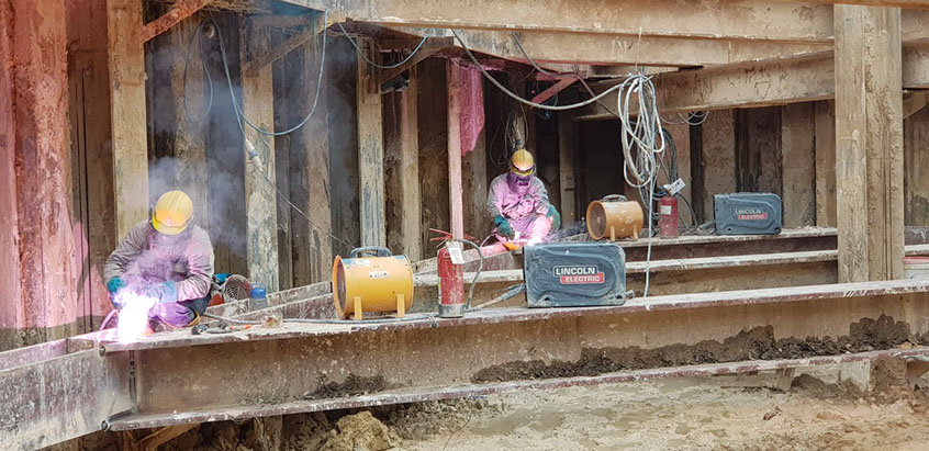 To complete strutting work, on-site welding works are carried out on all components from our fabrication yard.